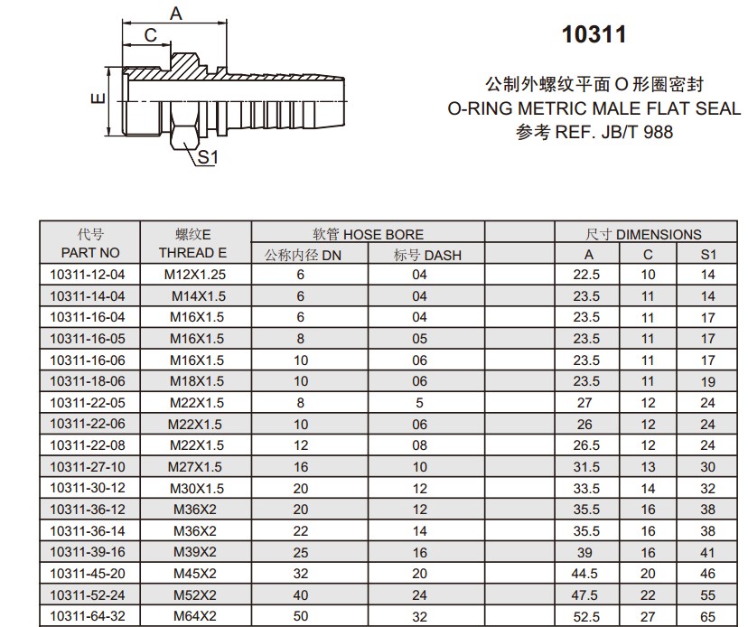 10311 公制外螺紋平面O形圈密封
