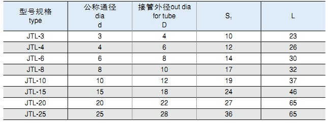 一、JT系列卡套式管接頭適用于有色金屬管,編織尼龍管的連接。最大工作壓力為1.0MPa