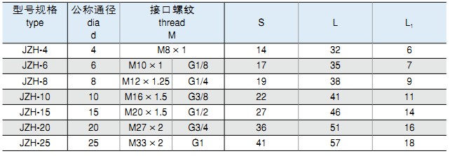 安裝及應用 JZH系列氣動管接頭,是一種新型的組合式氣動管接頭,最大工作壓力為1.0MPa.這種管接頭是由各種不同的接頭、接頭體和一個終端管座組合而成的。通過這三部分的組合,可以把同個管接頭組合成具有各種不同連接方式和不同公稱通徑的組合式管接頭。 外形尺寸