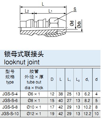 安裝及應用最大工作壓力:3.5MPa.工作溫度:-10℃~+100℃型號規格說明,下圖例JGS-W-6A(JGS-K-6B)插入式外螺紋接口。高性能快速接頭,外插式內螺紋接口。外形尺寸