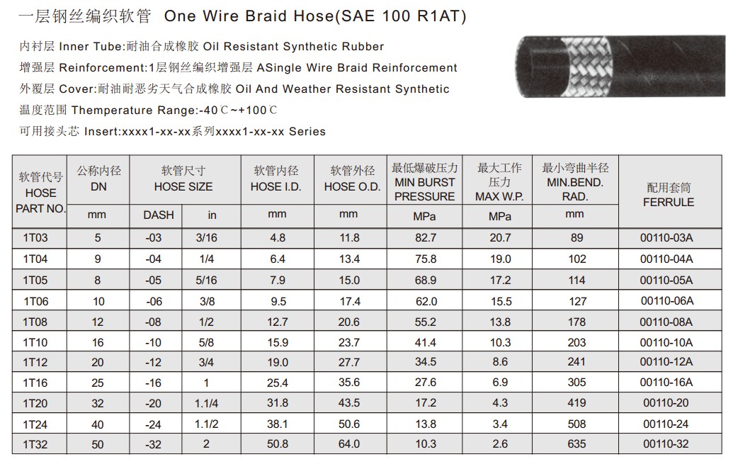 關(guān)鍵詞:SAE 100 R1AT 一層鋼絲編織軟管