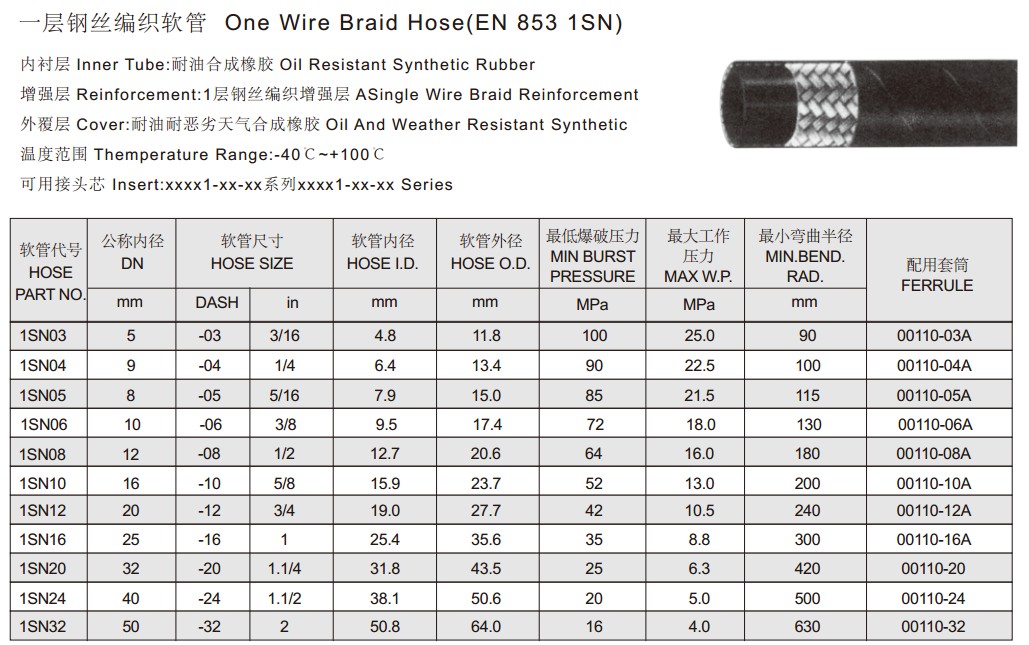EN 853 1SN 一層鋼絲編織軟管