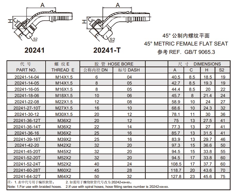20241 45°公制內螺紋平面 扣壓式軟管接頭