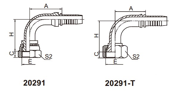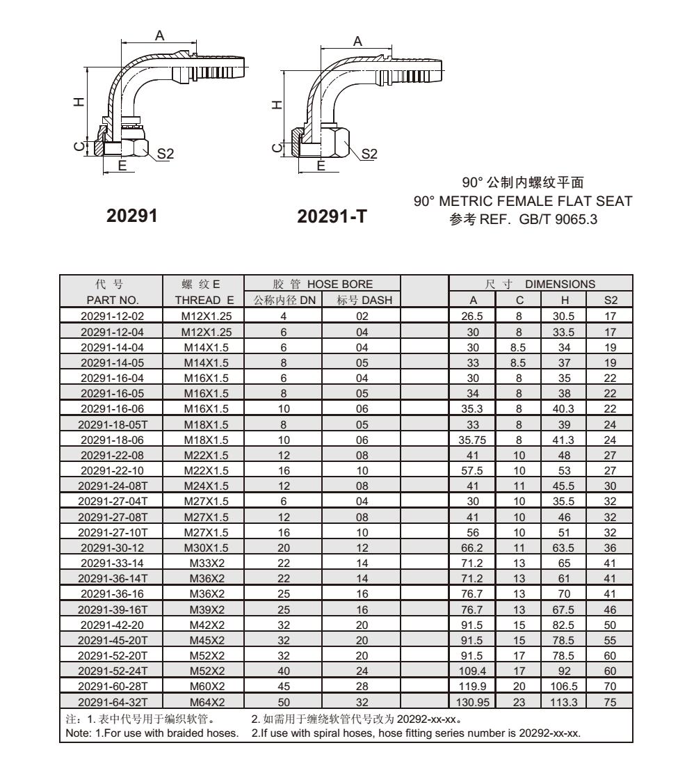 20291 90°公制內螺紋平面 扣壓式軟管接頭