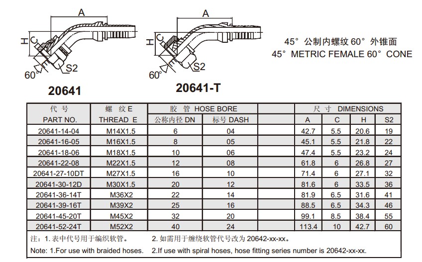 20641 45°公制內(nèi)螺紋60°外錐面 扣壓式軟管接頭