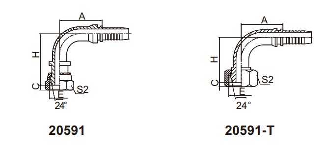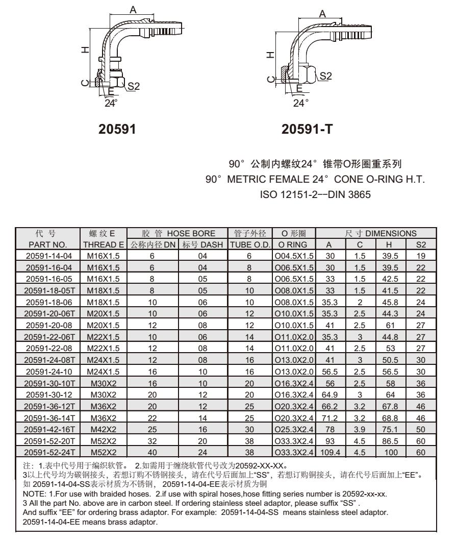 20591 90°公制內螺紋24°錐帶O形圈重系列 扣壓式軟管接頭