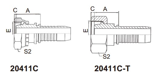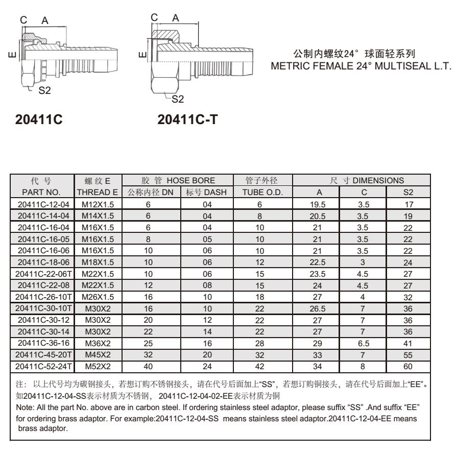 20411C 公制內螺紋24°球面輕系列 扣壓式軟管接頭