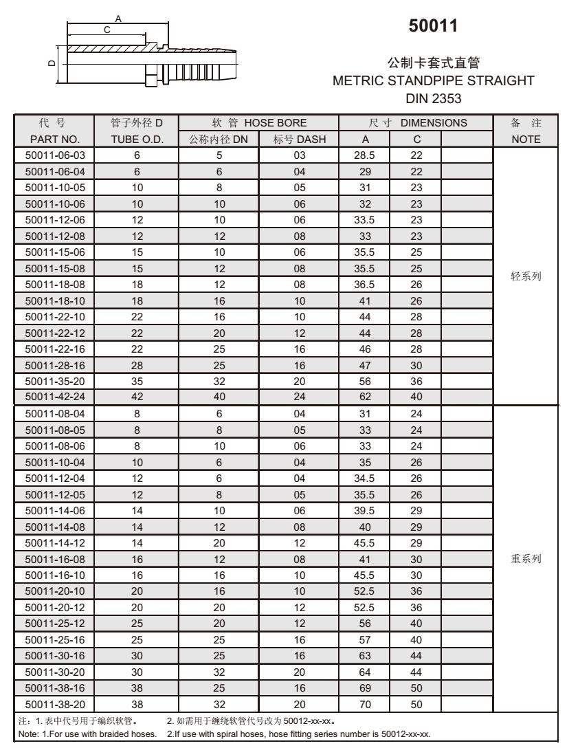50011 公制卡套式直管