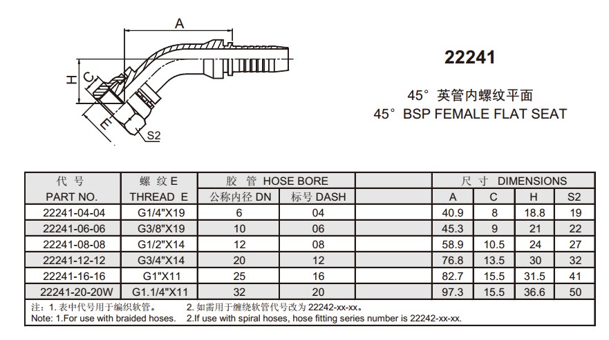 22241 45°英管內螺紋平面