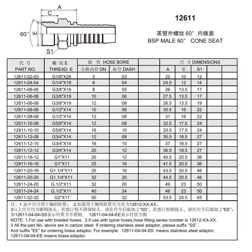 12611 英管外螺紋60°內(nèi)錐面.