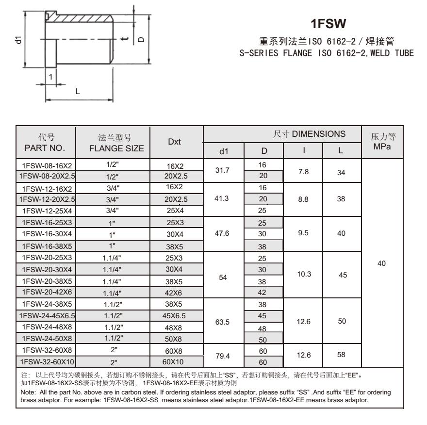 1FSW 重系列法蘭IS0 6162-2/焊接管