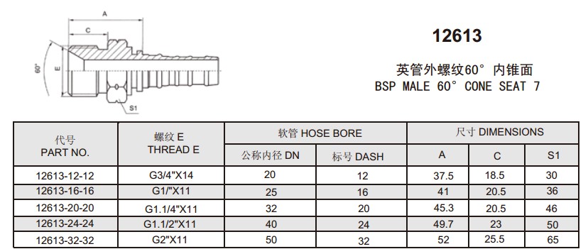 12613 英管外螺紋60°內錐面