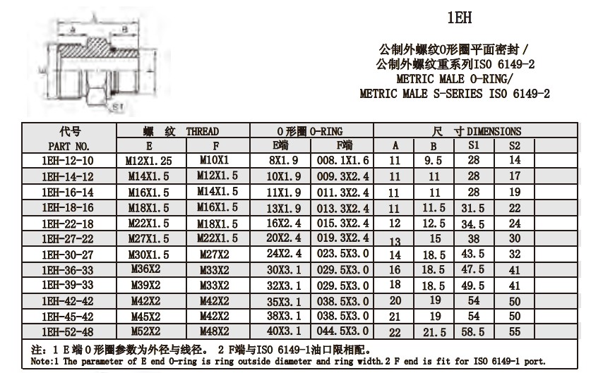 1EH 公制外螺紋O形圈平面密封/公制外螺紋重系列IS0 6149-2