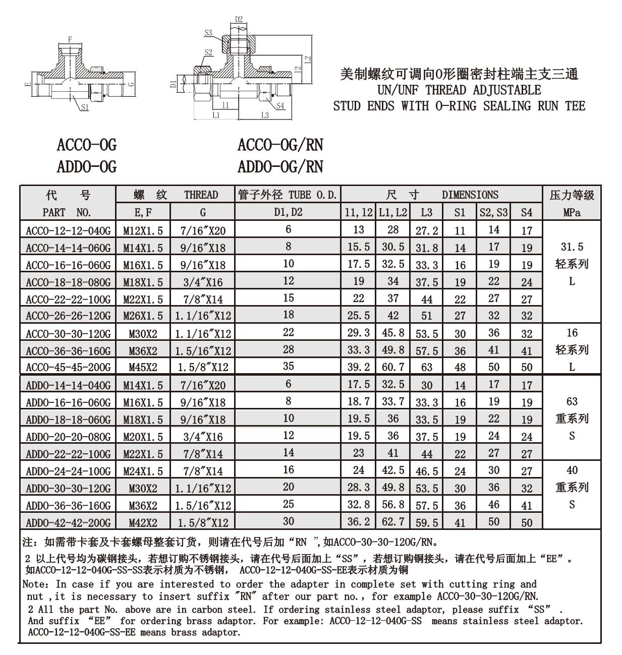 ACC0-OG ADD0-OG 美制螺紋可調(diào)向0型圈密封柱端主支三通