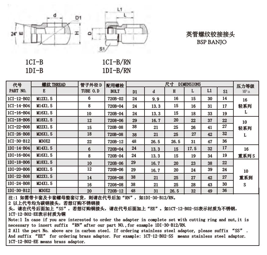 1CI-B 1DI-B 英管螺紋鉸接接頭