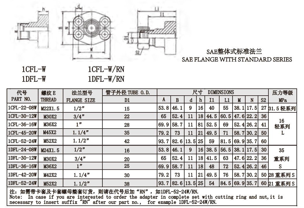 1CFL-W 1DFL-W SAE整體式標準法蘭