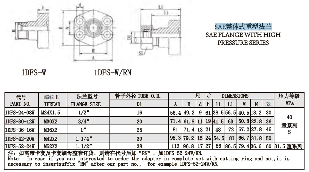 1DFS-W 1DFS-W/RN SAE整體式重型法蘭