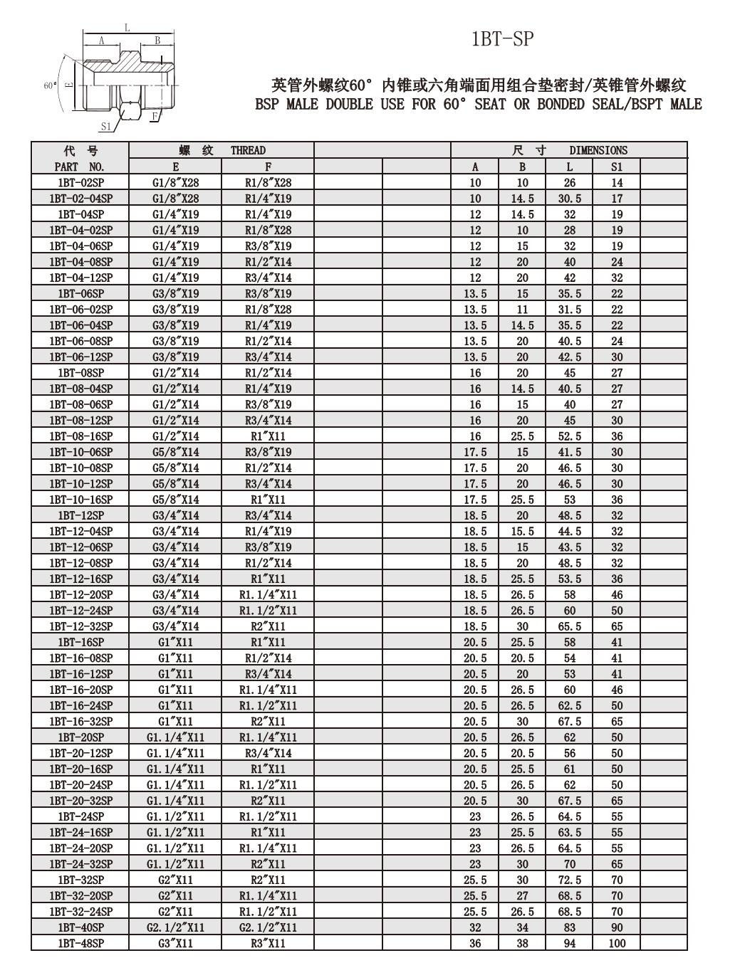 1BT-SP 英管外螺紋60°內錐或六角端面用組合墊密封/英錐管外螺紋