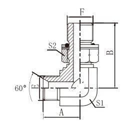 1BG9-OG 90 °彎英管外螺紋 60°內錐/英管外螺紋O形圈可調向柱端