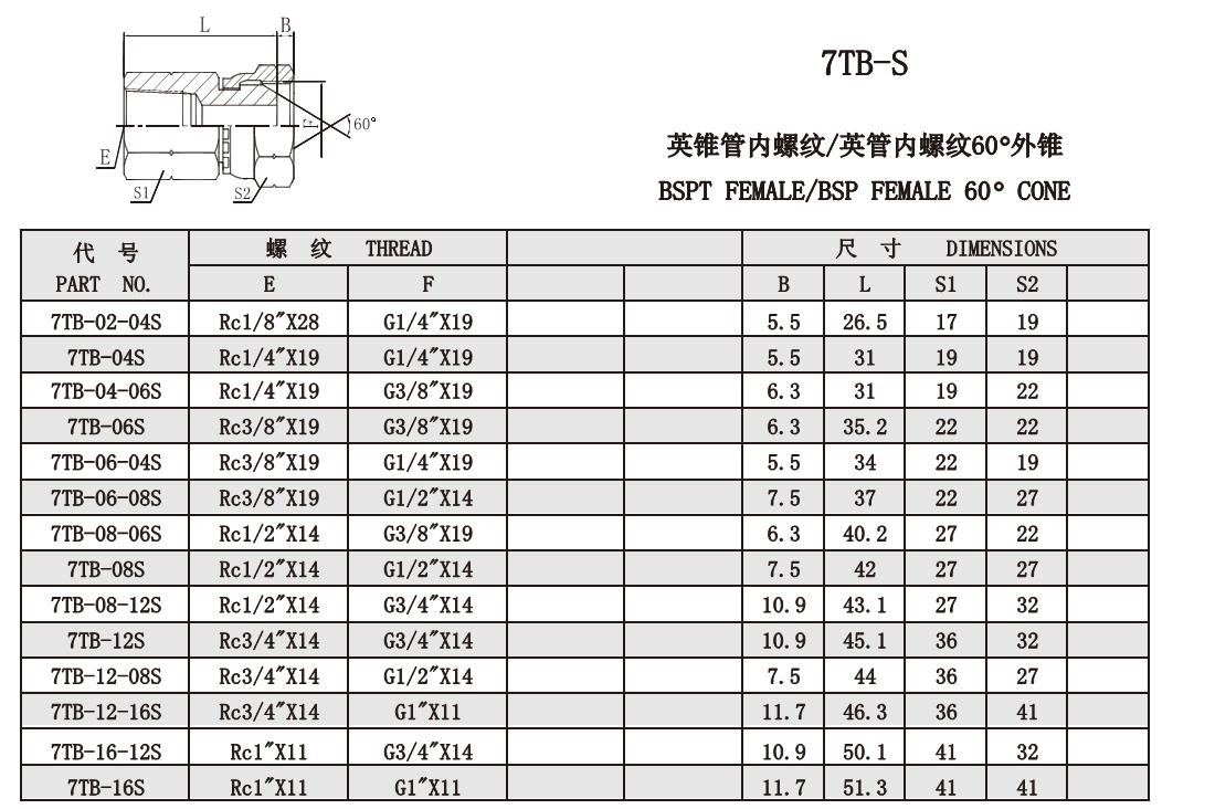 7TB-S 英錐管內螺紋/英管內螺紋60°外錐