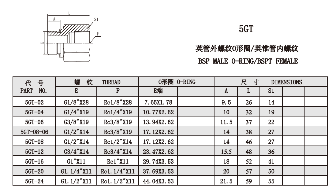 5GT 英錐管外螺紋O型圈/英錐管內螺紋
