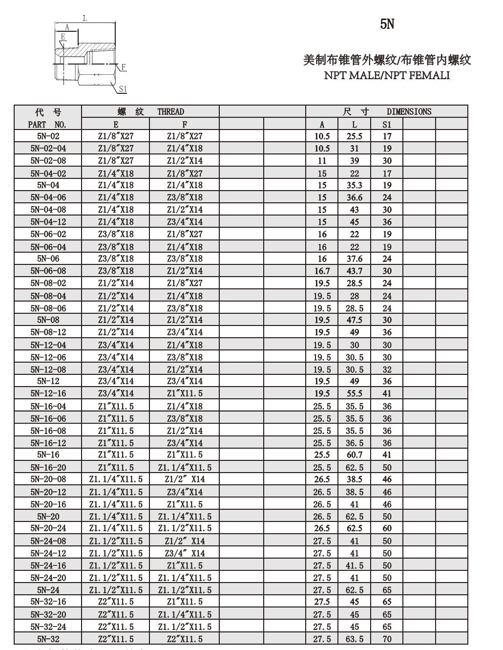 5N 美制布錐管外螺紋/布錐管內螺紋
