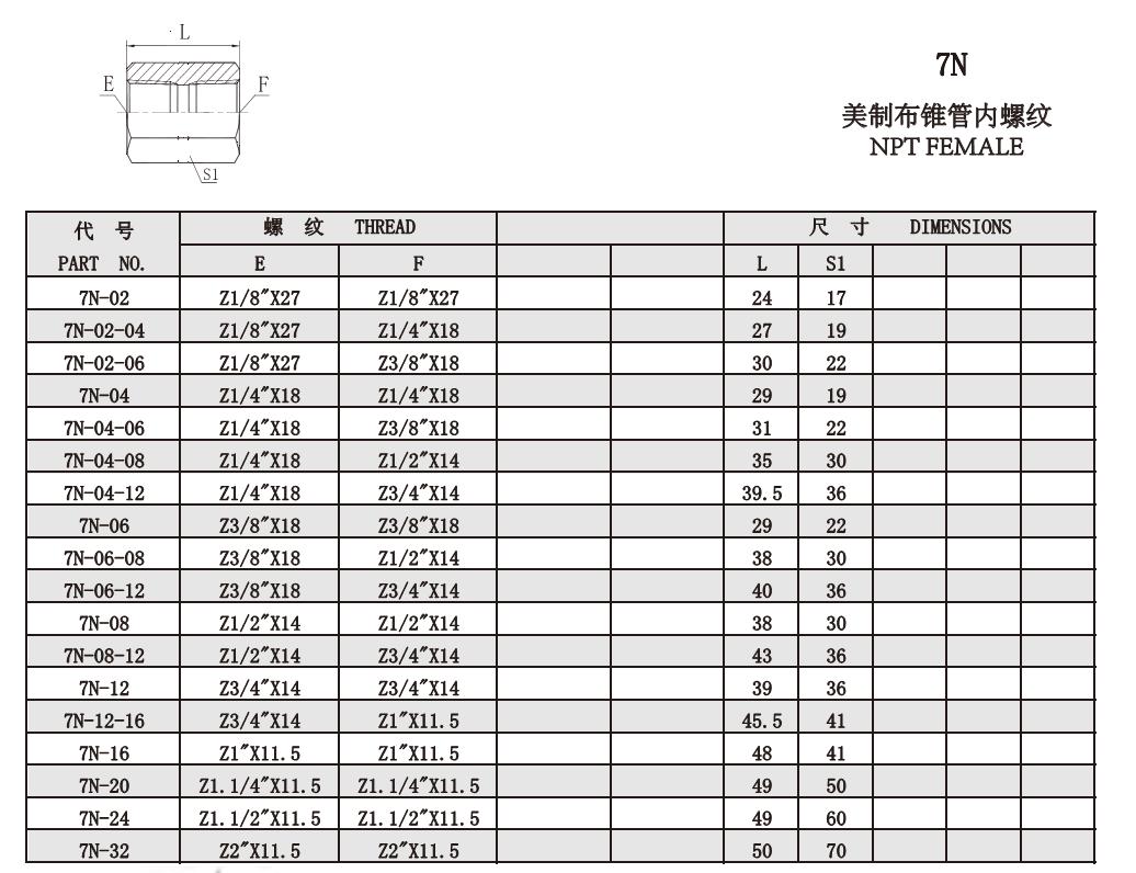 7N 美制布錐管內螺紋