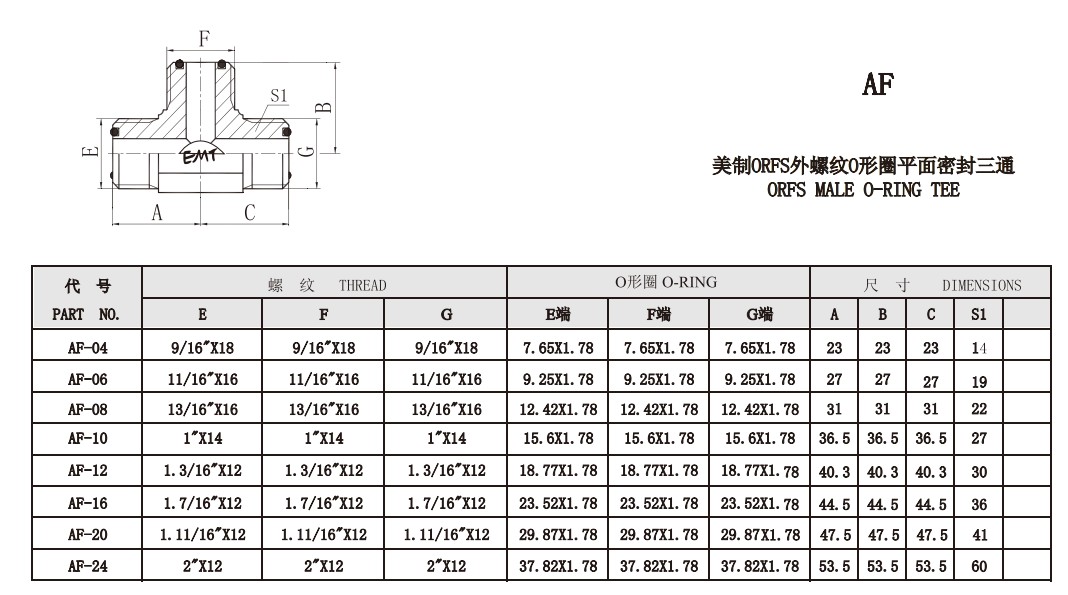AF 美制ORFS外螺紋O形圈平面密封三通