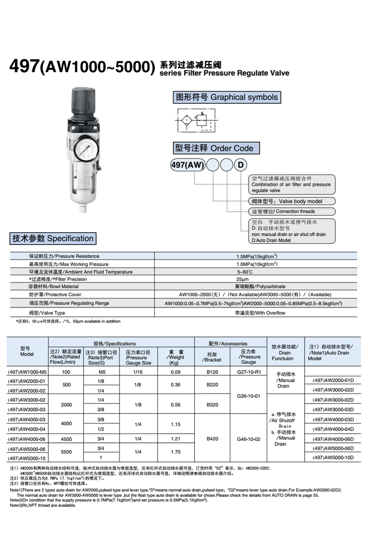 空氣過濾減壓閥 497系列