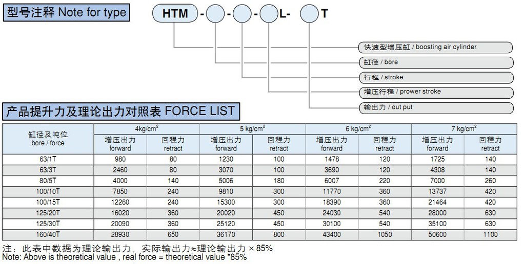 技術參數 Specification項目 / Item 參數 / Specification產品名稱 / TypeHTF 1~40T增壓缸HTF 1-40T boosting cylinder