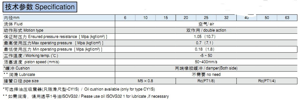 *可選擇油壓吸震器(只限滑尺型-CY1S) / Oil cushion available (only for type CY1S)