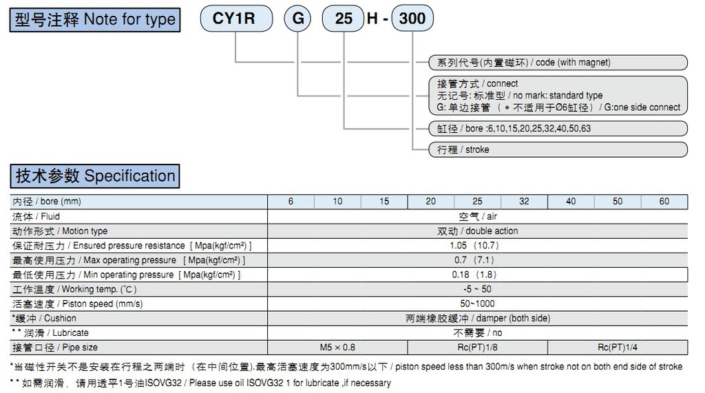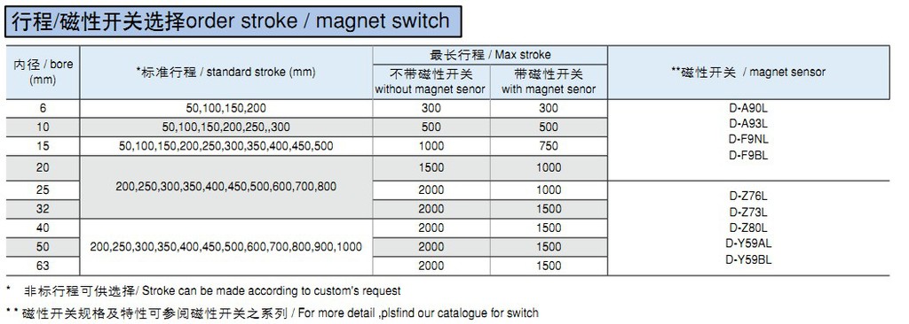 *當磁性開關不是安裝在行程之兩端時(在中間位置).最高活塞速度為300mm/s以下 / piston speed less than 300m/s when stroke not on both end side of stroke