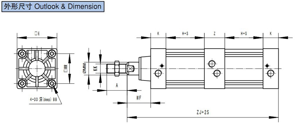 缸組成,其拉力為QGW氣缸的兩倍,推力為QGW氣缸的推力和拉力