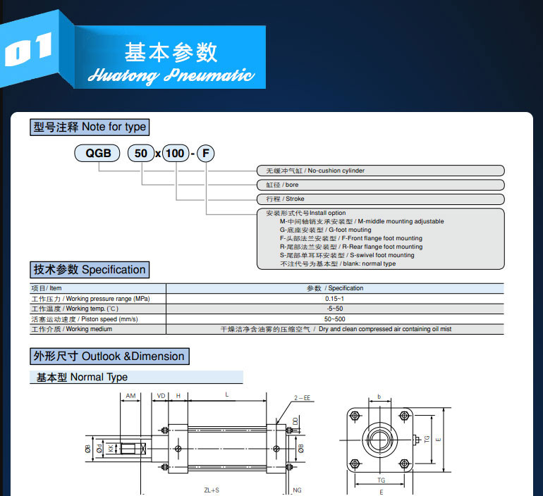 QGB氣缸單活塞桿,活塞雙向作用、帶可調緩沖。傳統產品,經過技術更新,性能可靠、壽命長久耐用。各種安裝形式、應用范圍廣。