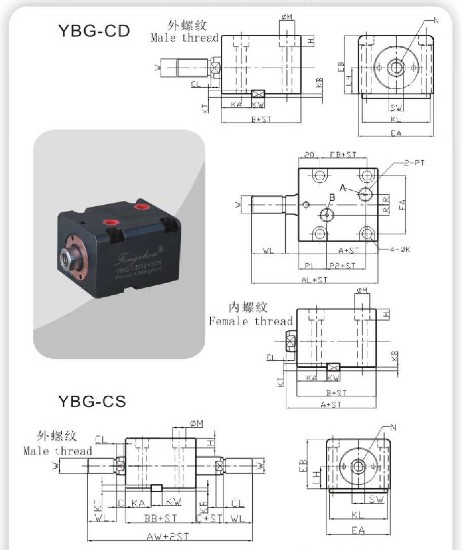 YBG-CD/CS油壓側向單軸/雙軸配管式薄型缸 | |