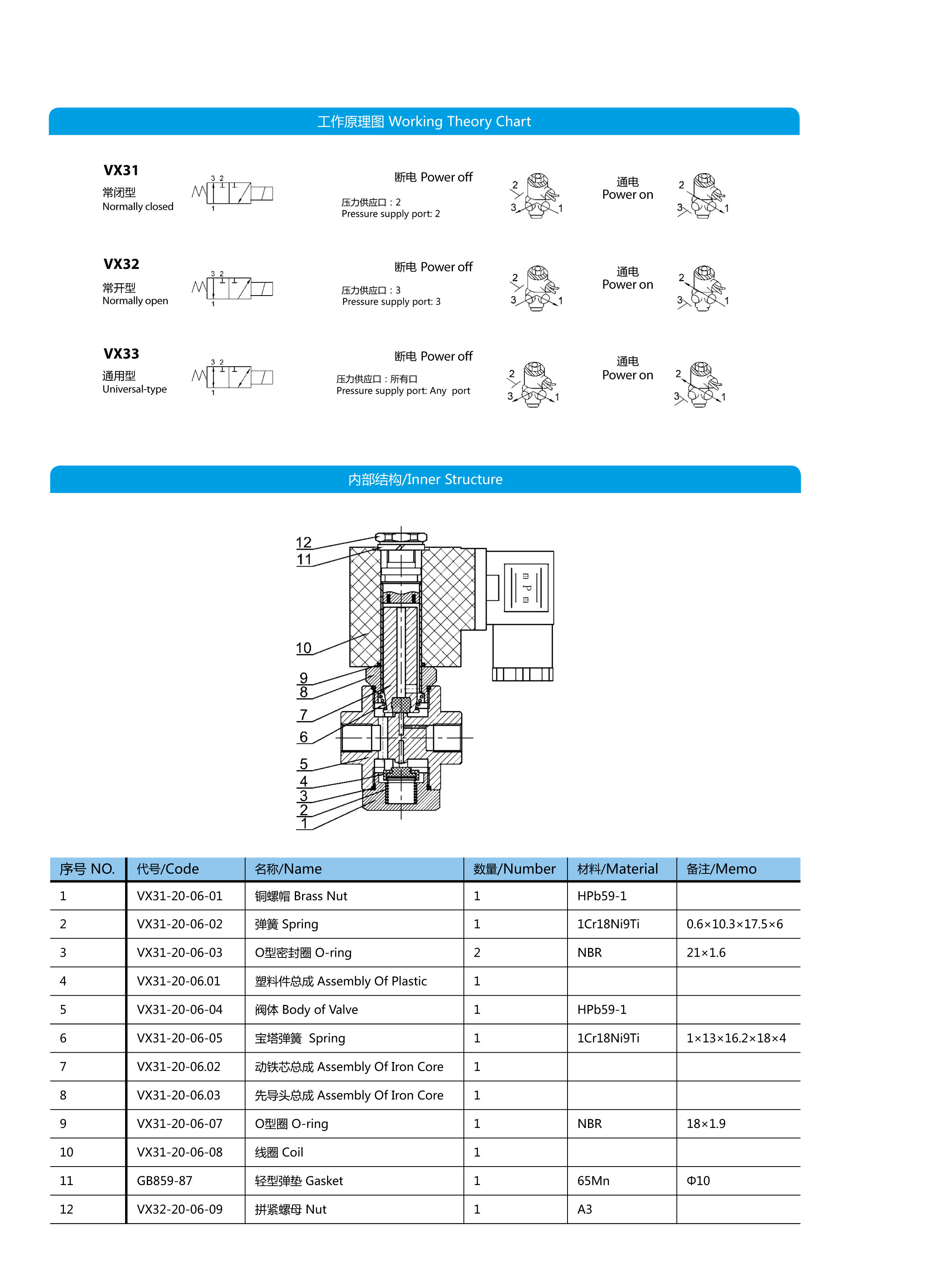 VX系列二位三通直動式電磁閥,可提供定制