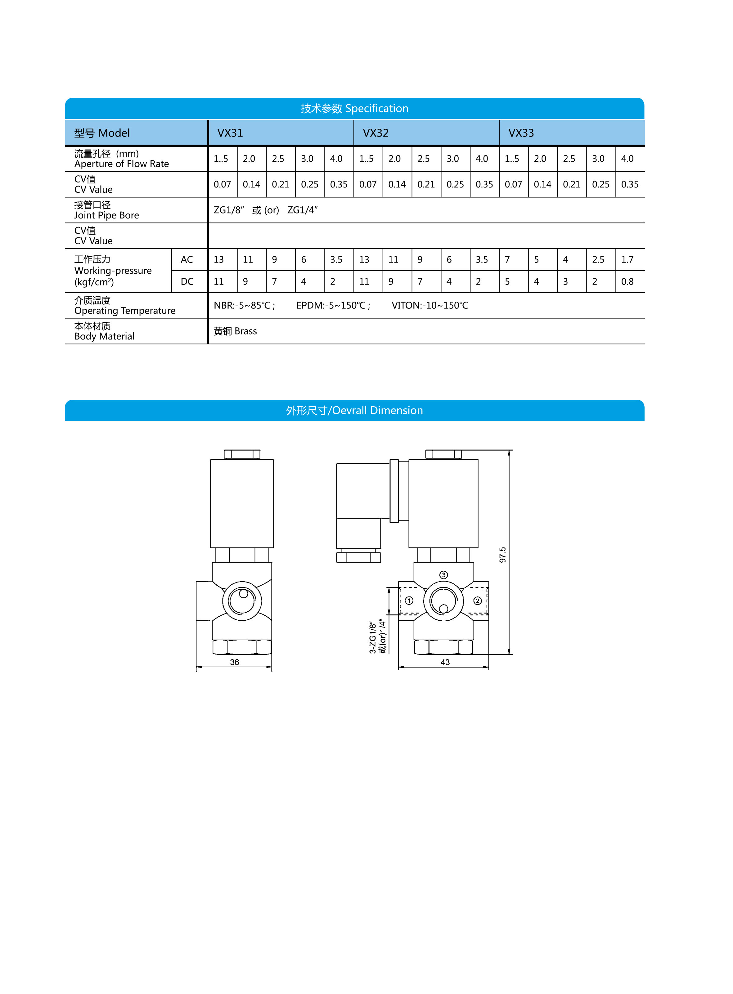 VX系列二位三通直動式電磁閥